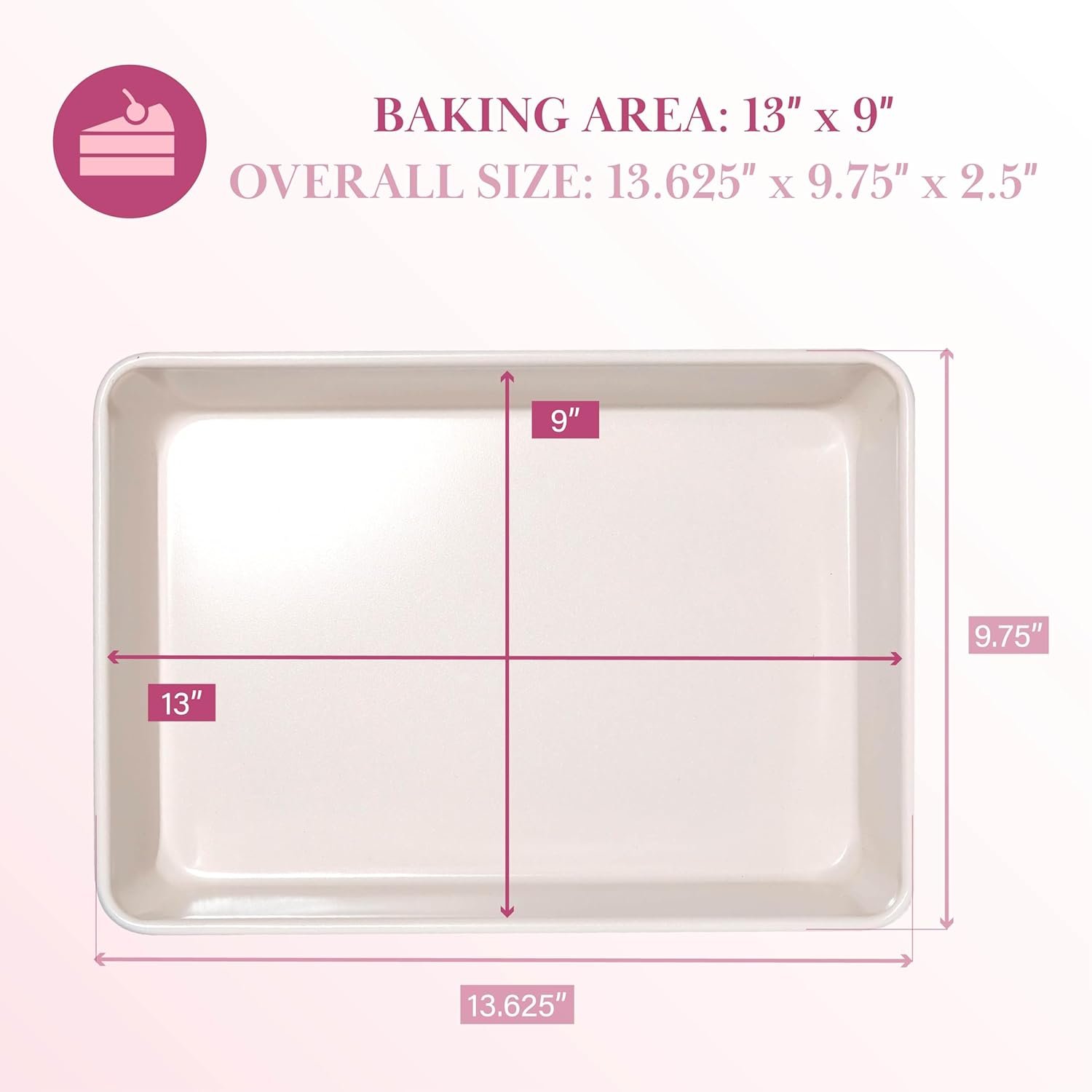 • FASHION MEETS FUNCTION: Generously sized 13-Inch x 9-Inch pan for versatile baking, cooking, roasting and more. The two-tone pink and cream instantly upgrades your kitchen!